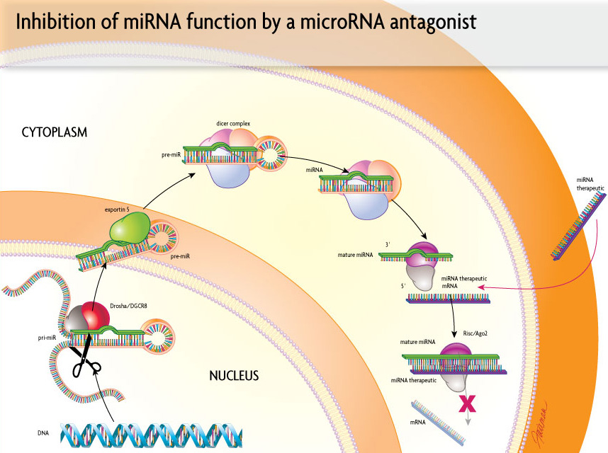 Inhibition der miRNA Funktion durch einen microRNA Antagonisten (© Alnylam) -