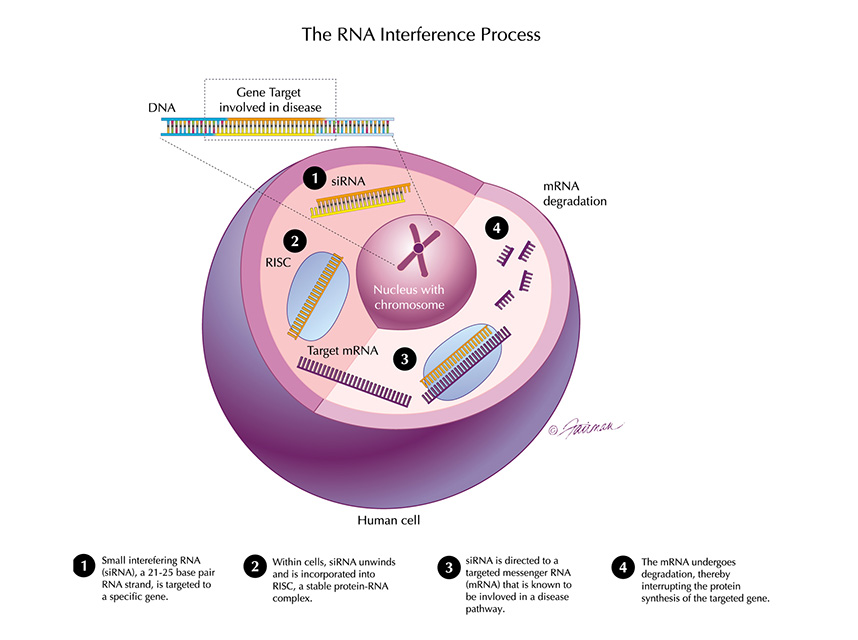 Die RNA-Interferenz wurde zuerst in Pflanzen und einigen wirbellosen Tieren (z.B. Fruchtfliege) beschrieben. Thomas Tuschl und Kollegen vom Max-Planck-Institut für biophysikalische Chemie in Göttingen gelang es dann aber erstmals die Funktion von RNAi auch in Säugerzellen nachzuweisen. In dem durch Thomas Tuschl entwickelten RNAi-Verfahren werden synthetisch hergestellte RNA-Stränge in eine Zelle eingebracht. Diese binden sich an die komplementäre Boten-RNA (mRNA), die anschließend durch einen komplexen zellulären Mechanismus abgebaut bzw. zerstört wird. Die Umsetzung von Genen in Proteine wird so reduziert oder unterbunden. Mithilfe der RNAi ist es also möglich, einzelne Gene gezielt abzuschalten, so dass die im Gen enthaltenen Informationen nicht weitergegeben werden und das entsprechende Protein nicht hergestellt wird. Die Entdeckung dieses „Schalters“ stellt somit einen viel versprechenden Ansatz zur Behandlung unterschiedlichster Krankheiten, die teilweise heute noch nicht durch Medikamente adressiert werden können, dar. RNAi-Therapeutika bilden somit eine bedeutende neue Klasse von Medikamenten. Sie könnten in der Zukunft unter anderem zur Behandlung von viralen Krankheiten, Stoffwechselerkrankungen oder auch Krebserkrankungen eingesetzt werden und eine ähnliche Bedeutung erlangen, wie bereits heute monoklonale Antikörper.