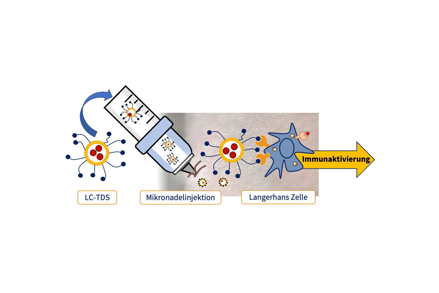 Über die Haut könnte sich das Immunsystem künftig besonders wirkungsvoll stimulieren lassen. Die Cutanos GmbH, eine Ausgründung des Max-Planck-Instituts für Kolloid- und Grenzflächenforschung, hat ein entsprechendes Verfahren zur Modulation von Immunzellen in der Haut entwickelt. So ermöglicht es die LC-TDS-Technologie (Langerhans Cell Targeted Delivery System) erstmals gezielt nur eine ganz bestimmte Immunzellart, nämlich die überwiegend in der Haut sitzenden Langerhans-Zellen, mit Antigenen zu beliefern, um eine kontrollierte Immunreaktion auszulösen. Sie nutzt dabei die Tatsache, dass Bakterien und Viren über Antigene von verschiedenen Zellen des Immunsystems erkannt werden. Ein am MPI künstlich hergestellter Ligand, der nur an den für Langerhans-Zellen spezifischen Rezeptor Langerin bindet, ist Kern der LC-TDS-Technologie und bietet einen exklusiven Zugang zu diesen Immunzellen. Das modulare System umfasst neben dem Liganden auch ein Transportsystem (Vehikel), sowie die auszuliefernden Wirkstoffe, beziehungsweise Antigene (Cargo). Das im Januar 2021 in Wien gegründete Start-up hat eine exklusive Lizenz mit der Max-Planck-Gesellschaft über das Verfahren abgeschlossen und entwickelt nun auf dessen Grundlage innovative Immuntherapien.