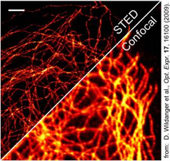 Lebende Zellen lassen sich mit der modernen Fluoreszenz-Mikroskopie erforschen. Dabei werden entsprechende Moleküle innerhalb der Zelle mit Fluoreszenzfarbstoffen markiert, über Licht angeregt und zum Leuchten gebracht. Jedoch können mit der herkömmlichen Mikroskopie keine Details unterschieden werden, die näher als 200 nm beieinander liegen (Beugungsgrenze; Abbesche Auflösungsgrenze). Der Grund hierfür liegt in der Wellennatur des Lichts und der damit verbundenen räumlichen Ausdehnung des Fokalpunktes eines Lichtstrahls.