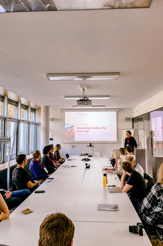 Der zweite Veranstaltungstag setzte den Schwerpunkt auf praxisorientierte Workshops. Hier hatten die Teilnehmenden die Möglichkeit, ihre Kenntnisse in den Bereichen Produkt-Markt-Fit, Tech-Transfer und Pitch-Training zu vertiefen.