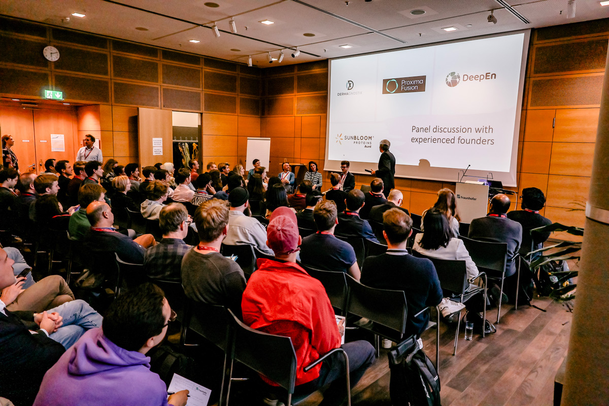 Einer der Höhepunkte des ersten Tages war die Podiumsdiskussion, bei der erfahrene Gründerinnen und Gründer wie Dr. Jorrit Lion von Proxima Fusion GmbH ihre Erfahrungen teilten und wertvolle Einblicke gaben.