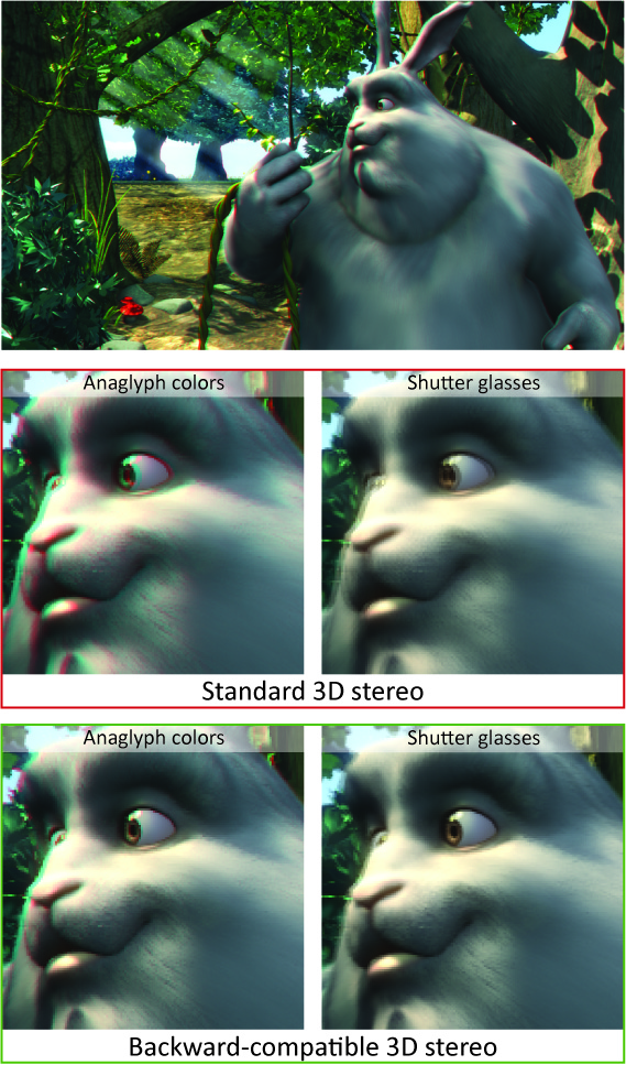 Die „Backward-compatible Stereo 3D“-Technik setzt Disparität nur dann ein wenn sie gebraucht wird. So wird es möglich Bilder zu produzieren, die für den Betrachter vollkommen normal wirken, wenn dieser kein Stereo-Equipment nutzt und die bei Nutzung der